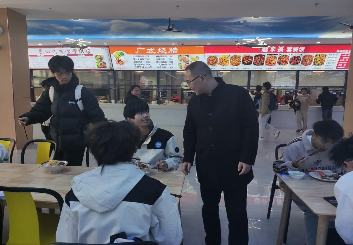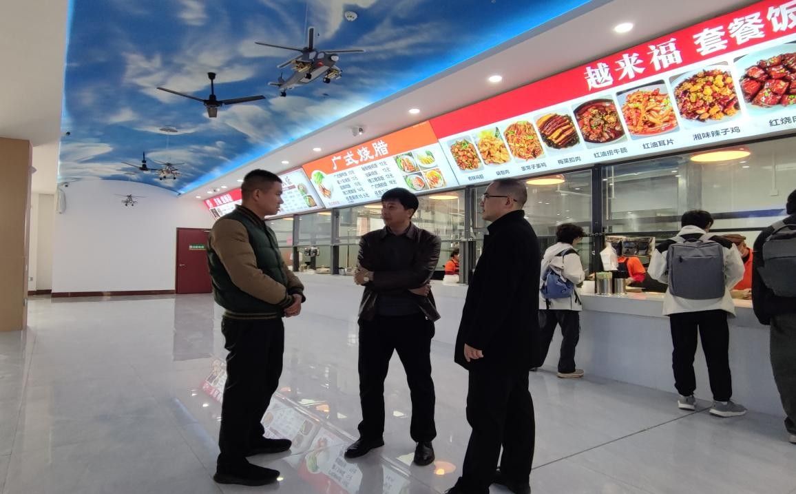 近日,分管后勤工作的副校长杨永昌、后勤管理处处长张海涛深入天舟楼食堂一线开展调研工作。此次调研聚焦食堂运营情况及师生用餐体验,校领导与食堂负责人、现场管理人员及就餐学生展开面对面交流,精准收集各方意见建议,为餐饮服务提质升级筑牢基础。
