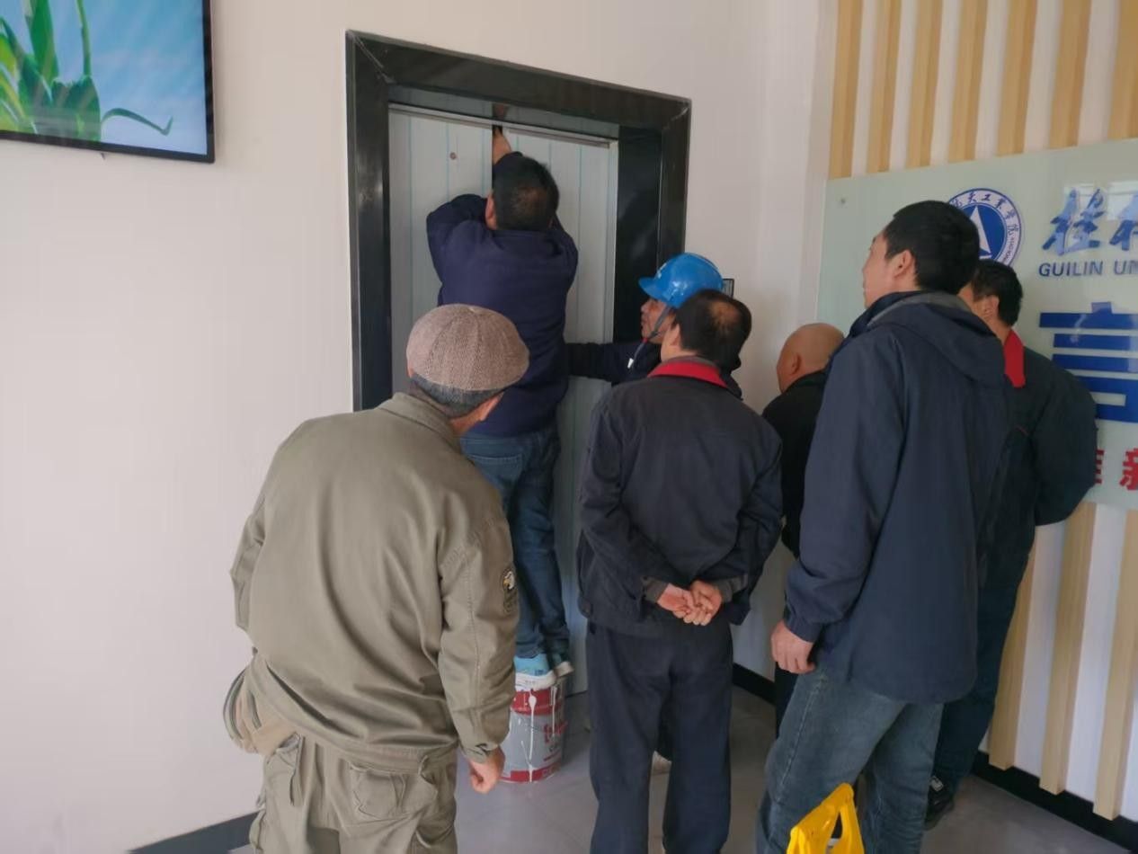 为提升电梯突发故障时的应急处置能力,保障师生出行安全,11月28日下午,后勤管理处维修科联合广西永峰电梯工程有限公司,在南校区擎天楼 D 座组织开展电梯应急救援专项演练,维修科17名工作人员参与系统培训。