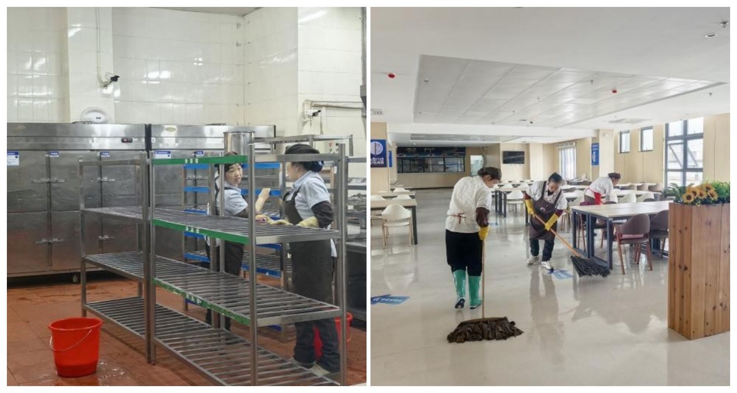 食堂的烟火气,是校园里最温暖的期待。为全力护航新学期餐饮服务,饮食科工作人员提前到岗、周密部署:全面开展环境卫生大扫除,对餐厅、后厨、储物间等重点区域进行彻底清洁消杀;严格落实食材采购验收制度,严把食品安全关口,确保新鲜食材规范入库、有序储备;对各类厨具设备进行全面检修保养,保障设备安全平稳运行。