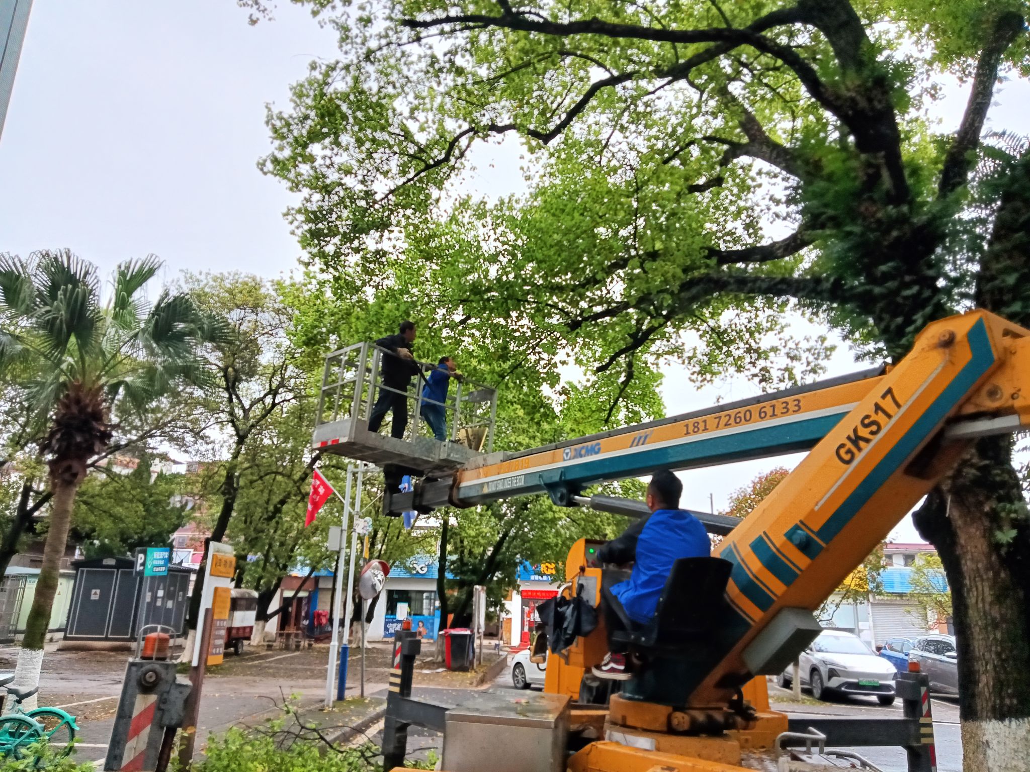 收到相关清理申请后,物业科第一时间响应,迅速组织专业工作人员,携带专业修剪工具前往现场开展作业。对存在安全风险的高枝、粗枝及冗余危枝进行规范修剪与集中清理,作业全程严格遵守校园安全管理规范,最大限度减少对师生正常学习、工作和生活秩序的影响。