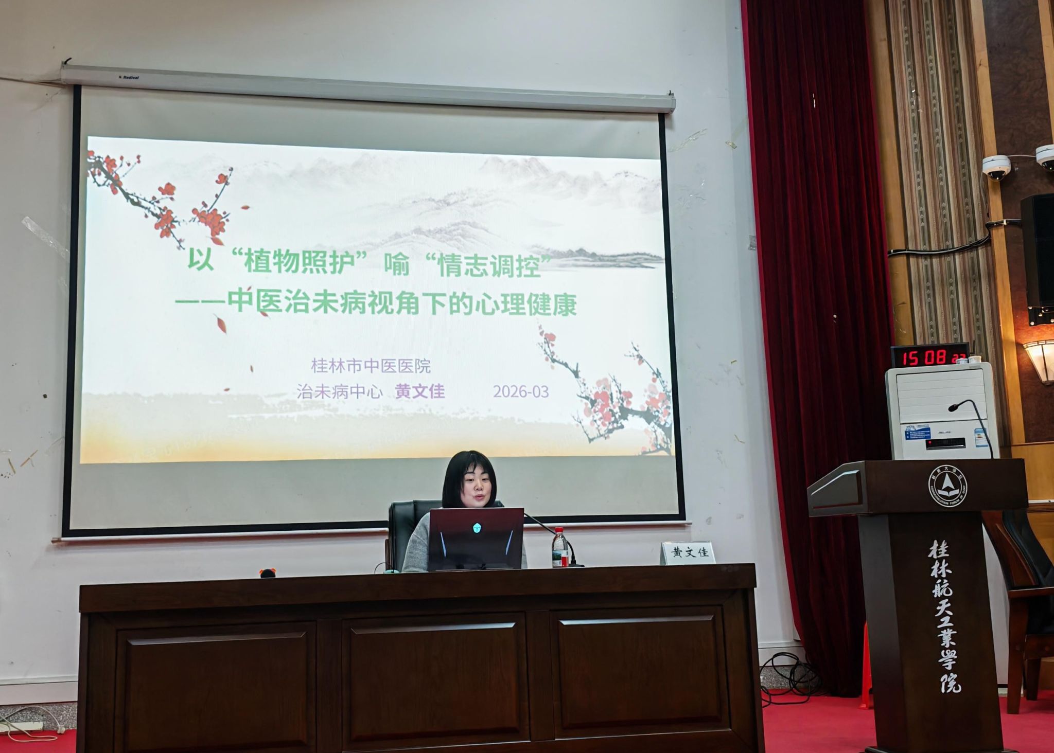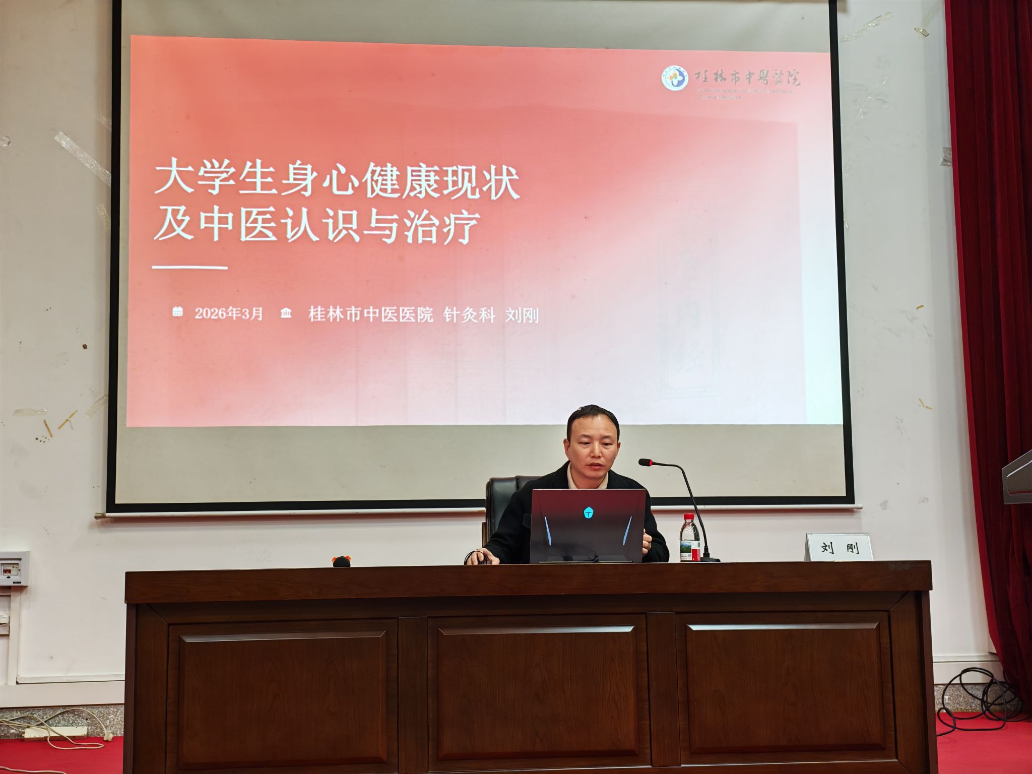 为筑牢大学生身心健康防线,传承中医智慧,3月20日下午,我校在北校区致远楼2108教室举办大学生身心健康现状及中医认知与治疗专题讲座。本次讲座特邀桂林市中医医院针灸科刘刚医生、治未病中心黄文佳医生主讲。